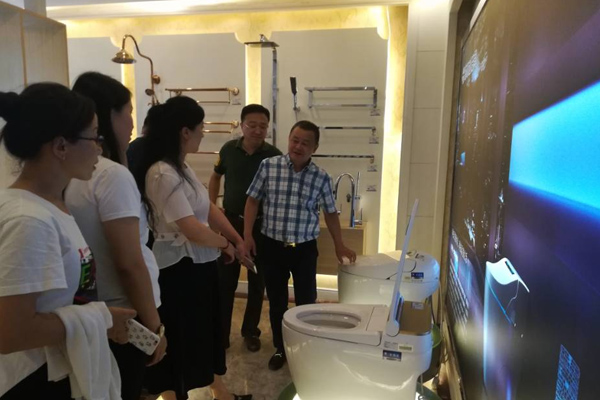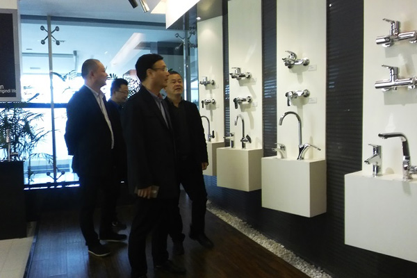 南县委统战部带领当地工商联莅临我司参观指导,玉环市工商联主席祁国伟先生及浙江省阀门协会副会长、浙江苏尔达洁具有限公司董事总经理苏光福、总经办人力资源副总侯朝平陪同