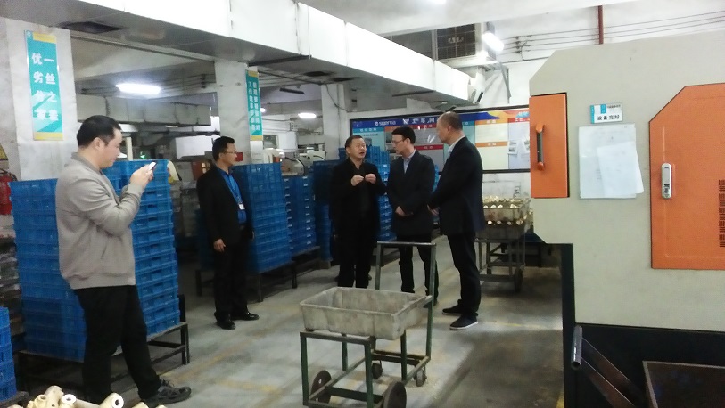 首先,副县长一行参观了精工车间,苏总详细地向副县长介绍我司产品加工工艺流程及先进设备的优势。当副县长看到形态各异的产品壳体时,拿到手中仔细打量,一一向苏总询问该产品的功能及优势,似乎要找出其中的奥秘。当副县长看到我司先进的加工机械棗剥皮机,被它多个产品同时精确地加工性能所吸引。