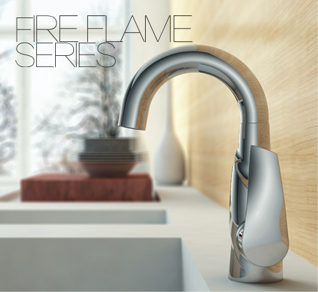 火焰系列 -龙头点缀生活 水和火,两种截然相反的事物 第一次,水火交融(水从火焰形状的龙头流出) 水龙头给你的感觉不再是金属的冰冷,却是温暖,以及火焰一般 的激情。 让生活被水龙头点燃。
