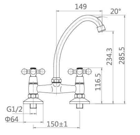 特征:双把菜盆龙头,铜主体,G1/2阀芯