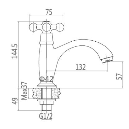 特征:单冷面盆龙头,铜主体,G1/2阀芯