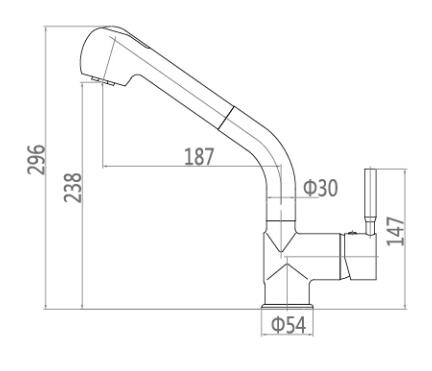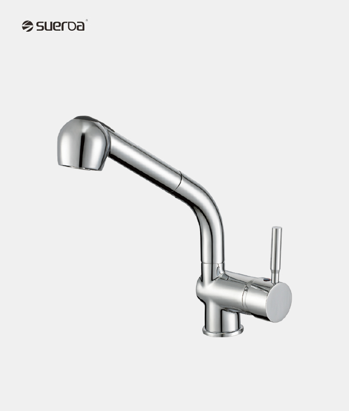 特征:单把抽拉菜盆龙头,铜主体,40陶瓷阀芯