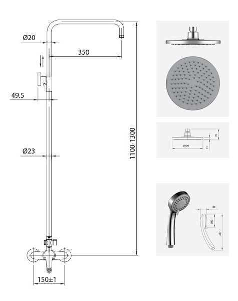• 淋浴柱带150CM 不锈钢 淋浴管